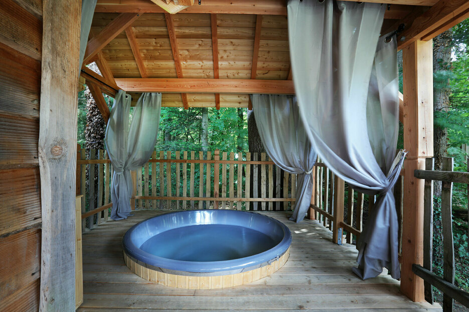 Vous apprécierez le calme de l’environnement et le charme de cette cabane suspendue qui mêle le bois et une décoration moderne et design.