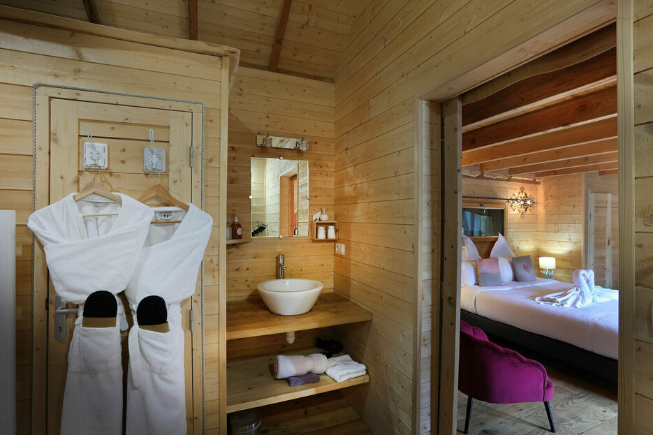 Vous apprécierez le calme de l’environnement et le charme de cette cabane suspendue qui mêle le bois et une décoration moderne et design.