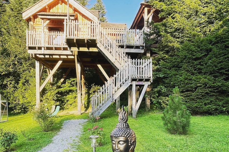 Offrez-vous une escapade la tête dans les étoiles de Haute-Savoie : installée à 5 mètres de hauteur, cette cabane confort vous invite à des vacances uniques dans un écrin de verdure, à quelques kilomètres d’Evian-les-Bains et Thonon-les-Bains.
