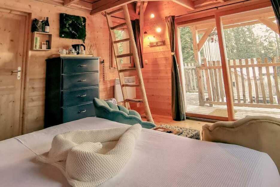 Cette cabane perchée est le cocon idéal pour un séjour en amoureux. Au détour d'un petit déjeuner perché sur la terrasse, ne soyez pas surpris de faire la rencontre de la faune locale: écureuils, oiseaux,...